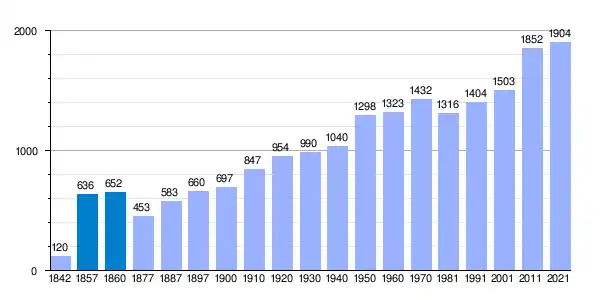 | Gráfica de evolución demográfica de Vallfogona de Balaguer[2] entre 1842 y 2021 |