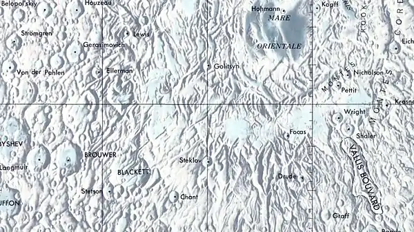 ![]() Vallis Bouvard, al sureste del Mare Orientale Vallis Bouvard |