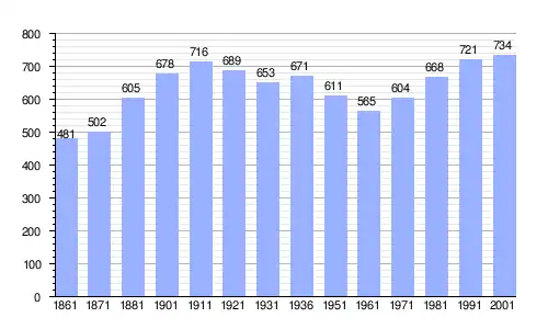 | Gráfica de evolución demográfica de Vallo Torinese entre 1861 y 2001 |