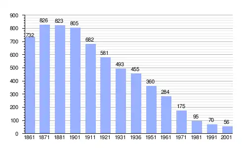| Gráfica de evolución demográfica de Valmala entre 1861 y 2001 |