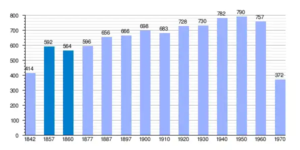 | Gráfica de evolución demográfica de Valparaíso de Abajo[1] entre 1842 y 1970 |