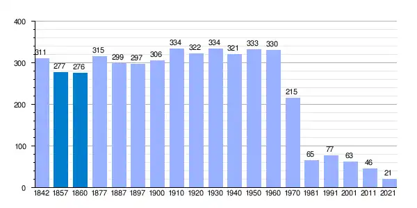 | Gráfica de evolución demográfica de Valsalobre[3] entre 1842 y 2021 |