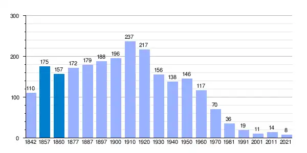 | Gráfica de evolución demográfica de Valtablado del Río[2] entre 1842 y 2021 |