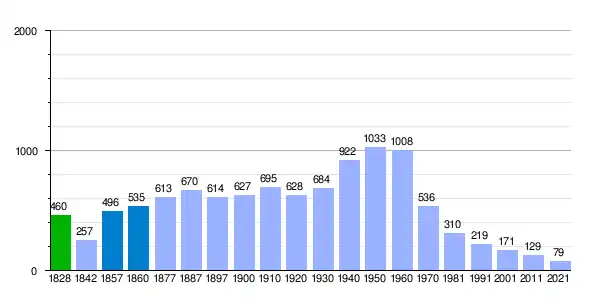 | Gráfica de evolución demográfica de Valtiendas[5] entre 1828 y 2021 |