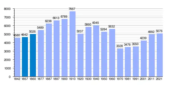 | Gráfica de evolución demográfica de Valverde[11] entre 1842 y 2021 |