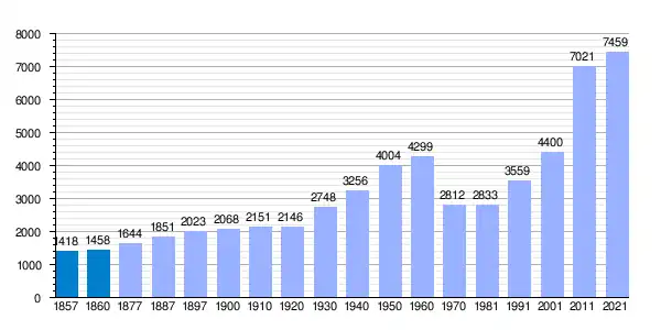 | Gráfica de evolución demográfica de Valverde de la Virgen[8] entre 1857 y 2021 |