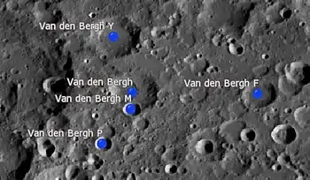 Por convención estos elementos son identificados en los mapas lunares poniendo la letra en el lado del punto medio del cráter que está más cercano a Van den Bergh.