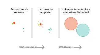 Los ASV también se conocen como variantes de secuencia exacta (ESV), OTU de radio cero (zOTU), sub-OTU (sOTU), haplotipos u oligotipos.[10][2]