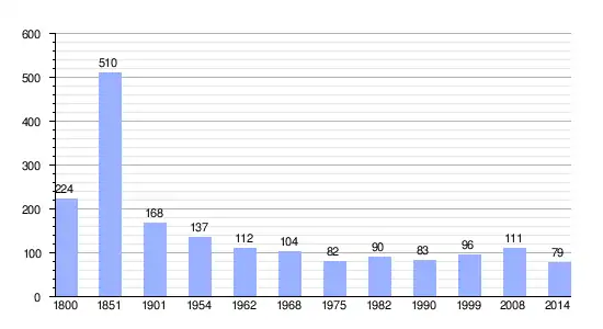 Gráfica de evolución demográfica de Vauxcéré entre 1800 y 2014