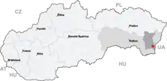 Se encuentra ubicado al noreste de la región, en la cuenca hidrográfica del río Bodrog (afluente derecho del Tisza) y cerca de la frontera con la región de Prešov, Ucrania y Hungría.[2]