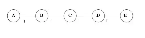 - En el siguiente intercambio, el nodo C comprueba que sus vecinos B y D tienen una trayectoria hasta A de distancia 3. C calcula su propia distancia hasta A en 3 + 1 = 4. En los siguientes intercambios, los nodos elevan ilimitadamente su distancia a A (cuenta a infinito).