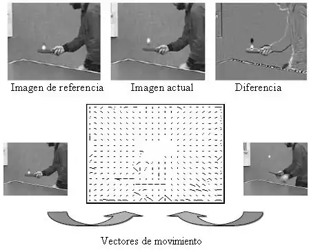 La imagen se divide en macrobloques de N píxels x N píxels y para cada bloque se indica mediante dos valores el desplazamiento horizontal y vertical entre imagen e imagen.