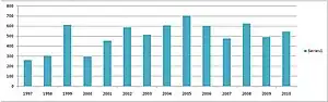 | 1998 | 55,3 | 19,8 | 12,6 | 69,4 | 2,5 | 0 | 0 | 0 | 0 | 0 | 17,4 | 128,2 | 305,2 |