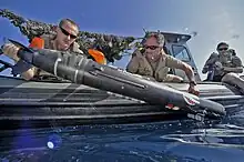 - Vehículo ligero: desplazamiento de hasta 500 lb, autonomía de 20 a 40 horas; lanzado desde embarcaciones semirrígidas usando un sistema de lanzamiento y recogida o mediante grúas desde barcos de superficie (ejemplo: UUV Mk 18 Mod 2 Kingfish).