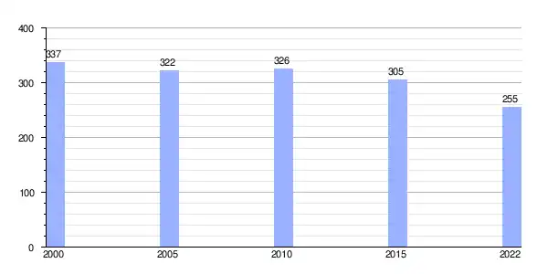 | Gráfica de evolución demográfica de Veiga (parroquia) entre 2000 y 2022 |