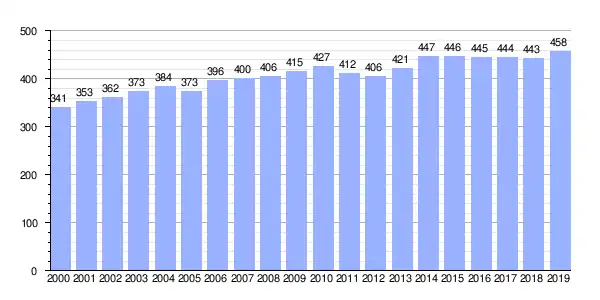 | Gráfica de evolución demográfica de Veigue entre 2000 y 2019 |