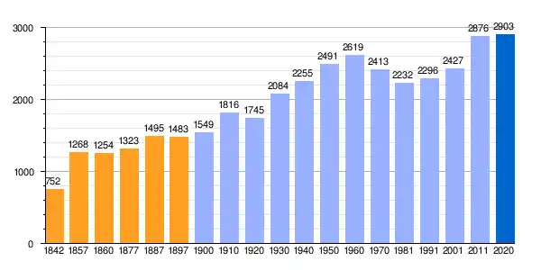 Población de derecho (1842-1897, excepto 1857 y 1860 que es población de hecho) según los censos de población del siglo XIX. Población de derecho (1900-1991) o población residente (2001-2011) según los censos de población del INE. Población según el padrón municipal de 2020 del INE. |