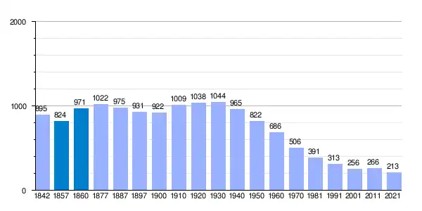 | Gráfica de evolución demográfica de Velayos[5] entre 1842 y 2021 |