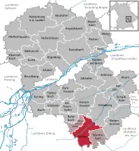 Se encuentra ubicado en el centro del estado, en la región de Baja Baviera, cerca de la orilla del río Isar —un afluente derecho del Danubio—.