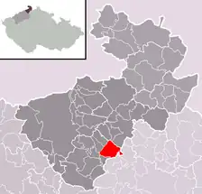Se encuentra ubicada al noreste de la región, en la ladera sur de los montes Metálicos, cerca del río Elba, de la región de Liberec y del estado alemán de Sajonia.[1]
