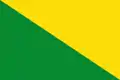 Paño rectangular, dividido diagonalmente desde lo alto del asta al vértice inferior del batiente, de color amarillo la porción de arriba y verde la de abajo.[22]