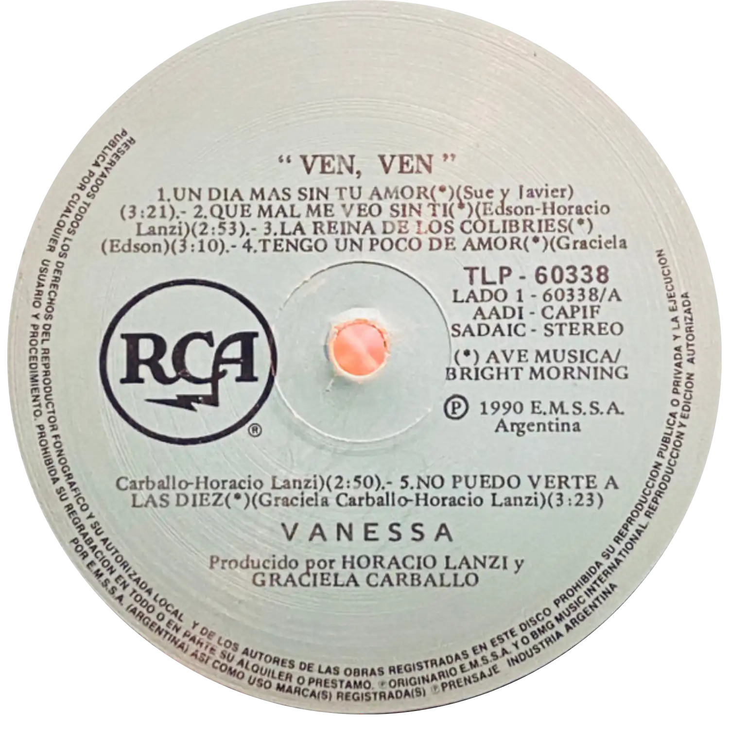 15. «Vanessa* – Ven, Ven». Discogs. «Sello: RCA – TLP. 60338, RCA – TLP - 60338 Formato: Vinilo, LP, Album País: Argentina Publicado: 1990 Género: Pop Estilo: Ballad».