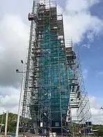 Para su ejecución se emplearon 80 toneladas de andamios, más de 150 personas directamente trabajando en la construcción y una grúa PH de 200 toneladas para el montaje de la estructura.[2]