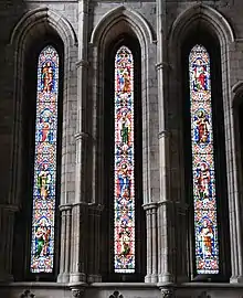 Ventanas lanceoladas en la Capilla de la Dama de la Catedral de Hereford, Herefordshire, Inglaterra