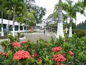 - El Parque Central tiene 12.000 metros cuadrados y sus linderos son las calles Nueve de Octubre, Diez de Agosto, Bolívar y la iglesia del Sagrado Corazón de Jesús. Juegos infantiles, una pista atlética y un estanque con peces son los atractivos del parque.[10]