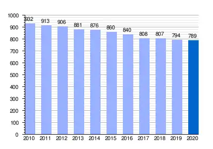 | Gráfica de evolución demográfica de los Ventorros S. José entre 2010 y 2020 |