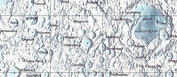 Vernadskiy es un cráter de impacto perteneciente a la cara oculta de la Luna, situado detrás del terminador este. Se encuentra al oeste-noroeste del cráter más pequeño Siedentopf. Al sur se halla Gavrilov, y mucho más lejos al oeste aparece Meggers.
