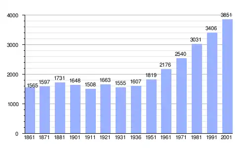 | Gráfica de evolución demográfica de Vertemate con Minoprio entre 1861 y 2001 |