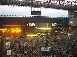 ![]() Escenario típico del Vertigo Tour en recintos abiertos. Concierto en el estadio de San Siro. | |||||