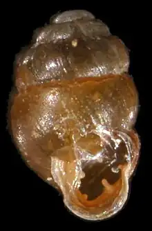 La concha de esta especie alcanza unos 3 mm de longitud. La cáscara es amarillenta o marrón y translúcida.[23]