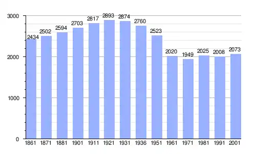 Gráfica de evolución demográfica de Vezza d'Alba entre 1861 y 2001