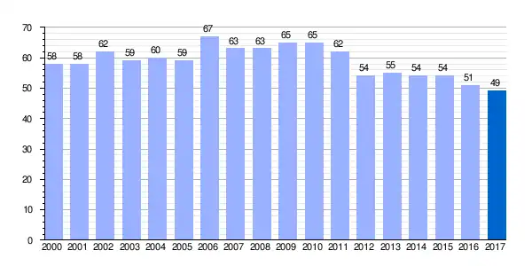| Gráfica de evolución demográfica de Viñaspre[4] entre 2000 y 2017 |