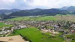 Se encuentra ubicado al oeste de la región, cerca del curso alto del río Váh (cuenca hidrográfica del Danubio) y de la frontera con la región de Trenčín.[1]