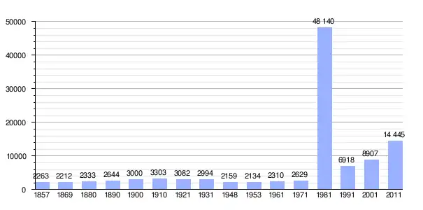 Según los censos de población de la oficina estadística de Croacia.[5] |