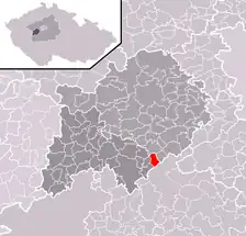 Se encuentra ubicada al oeste de la región y de Praga, en la cuenca hidrográfica del río Berounka —un afluente izquierdo del río Moldava—, y cerca de la frontera con la región de Pilsen.[1]