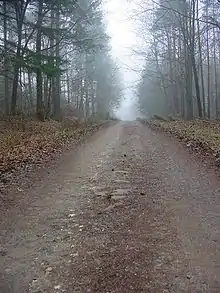 Más allá de las alturas entre Langen-Bergheim (Hammersbach) y Altwiedermus Ronneburg, la carretera pasaba de nuevo por Diebach am Haag (Büdingen) y Herrnhaag (Büdingen).