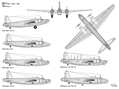 El Vickers Wellington fue un bombardero medio bimotor británico de largo alcance creado a mediados de la década de 1930 por el diseñador jefe de Vickers-Armstrong, Rex Pierson. La aeronave daba respuesta a la especificación B.9/32, publicada en 1932 y que solicitaba un avión bombardero diurno bimotor que tuviera mejores prestaciones que cualquier modelo anterior. El Wellington se usó extensamente como bombardero nocturno en los primeros años de la Segunda Guerra Mundial, hasta que fue desplazado como bombardero por otros aparatos cuatrimotores de mayores dimensiones como el Avro Lancaster. El Wellington siguió en servicio durante la guerra en otro tipo de misiones, particularmente para la guerra antisubmarina. Fue el único bombardero británico que estuvo en producción durante toda la guerra y al término de ésta seguía siendo un aparato de primera línea de combate. El Wellington fue uno de los dos bombarderos nombrados en honor a Arthur Wellesley, duque de Wellington, el otro fue el Vickers Wellesley.