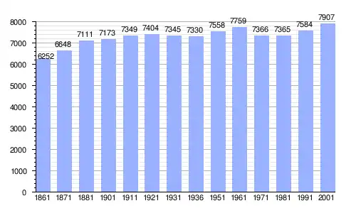 | Gráfica de evolución demográfica de Vicopisano entre 1861 y 2001 |