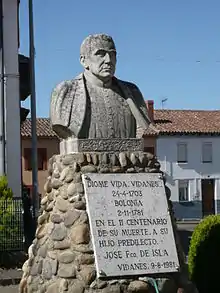 Se trata de un busto en piedra del Padre Isla, colocado sobre un pedestal. Levantado en 1981 con motivo del II Centenario de su muerte. Se encuentra situado en la plazoleta junto a la iglesia.
