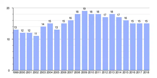 | Gráfica de evolución demográfica de Vieiro entre 1999 y 2018 |