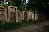 El viejo cementerio (nombre local: alter Friedhof) de Friburgo de Brisgovia, Baden-Wurtemberg, Alemania, en el barrio Neuburg, al norte del casco viejo. Tiene una superficie de 2,65 ha y fue utilizado como cementerio de la ciudad desde 1683 hasta 1872, cuando fue convertido en un parque. Tiene más de treinta bancos, una fontana, la capilla de San Miguel, varias tumbas, un monumento recordando el huracán Lothar.[1] Destaca la tumba de Caroline Walter en la muralla oriental del cementerio, que murió de tuberculosis en 1867 a la edad de sólo 16 años, y que tradicionalmente siempre está decorada con un ramo de flores.[2]