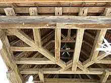 - Una viga de dragón ubicada en una construcción entramada. (Reino Unido.)[3]