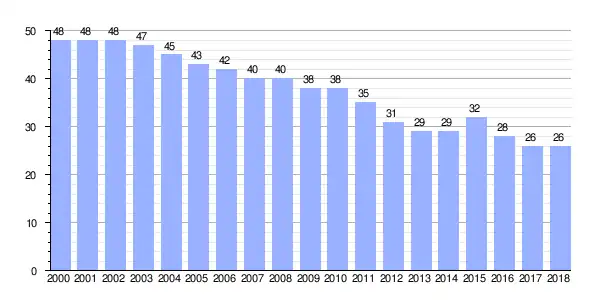 | Gráfica de evolución demográfica de Vigobó entre 2000 y 2018 |