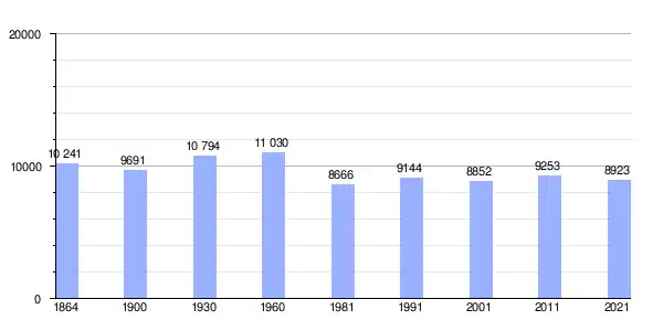 | Gráfica de evolución demográfica de Vila Nova de Cerveira entre 1864 y 2021 |