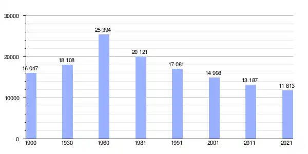 | Gráfica de evolución demográfica de Vila Pouca de Aguiar entre 1900 y 2021 |
