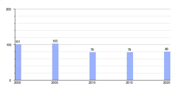 | Gráfica de evolución demográfica de Vila de Mouros entre 2000 y 2020 |